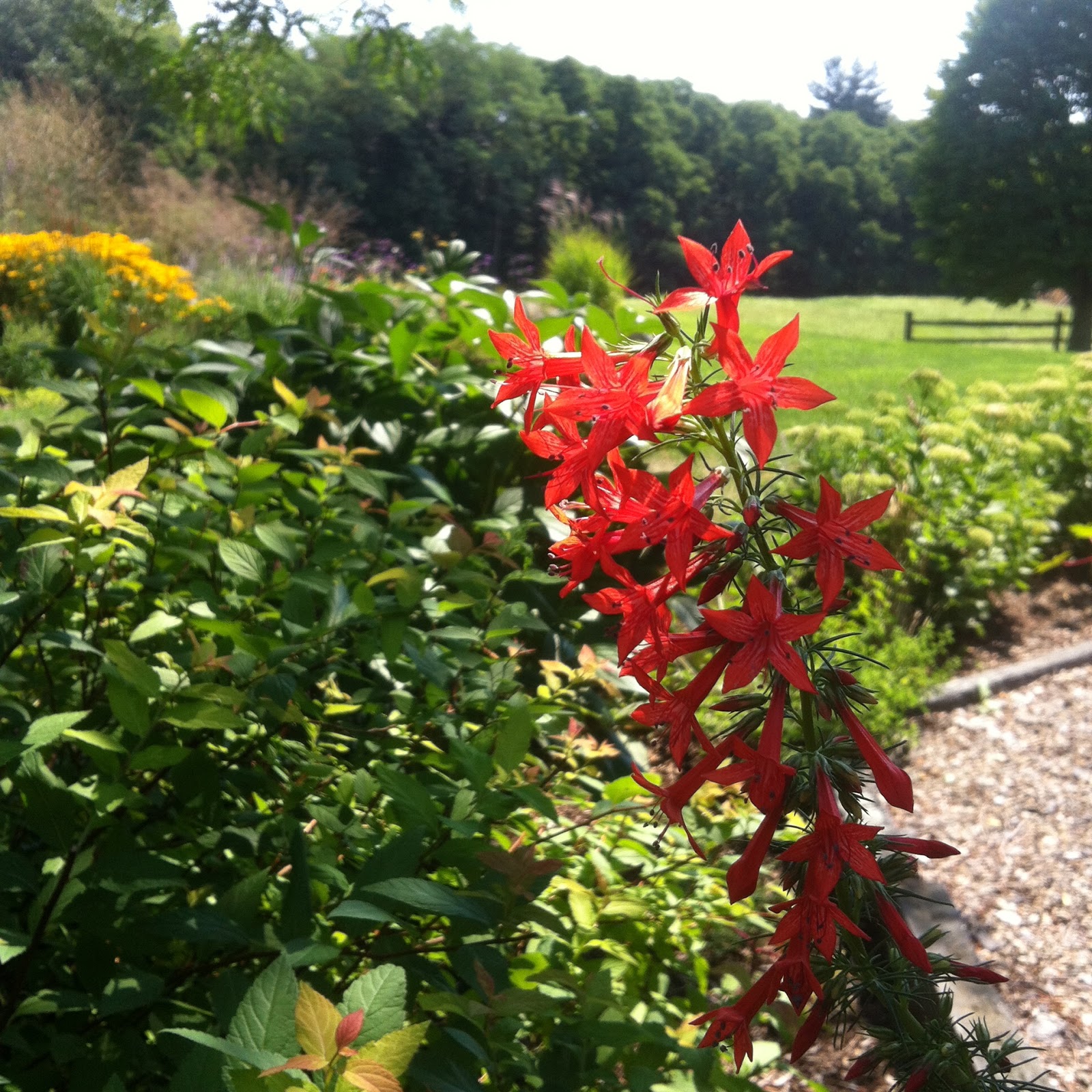 That red plant is Lychnis chalecondica, a nice shocking red in early summer and here it is going for a second round of bloom in August. It is plant, that when blooming, stops people in their tracks. It stopped me the first time I noticed it planted in the stock beds at Great Dixter amongst our beautiful, white flowering fleabane, Erigeron annus.