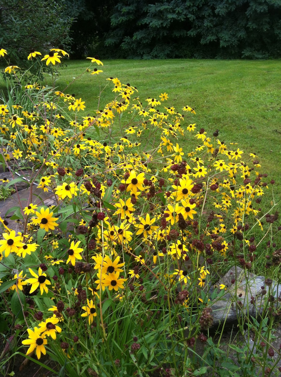 And lastly, I am in love with Rudbekia triloba, with its clouds and clouds of airy black eyed susan flowers. Here it mingles with Sanguisorba officinalis which I started from seed last year. I planted it in my gravel garden last fall, just as a holding spot, and it has done so well without water or compost. The stems are super strong and straight and not one has flopped. It is behaving very well in these conditions, even though I would have thought it wanted moisture and rich soil. What a nice surprise! I thought I preferred the cultivar 'Tanna,' but actually the straight species offers a bigger effect, slightly larger leaves, taller stems, and bigger flowers.